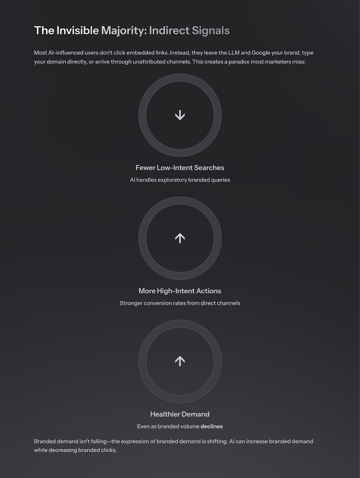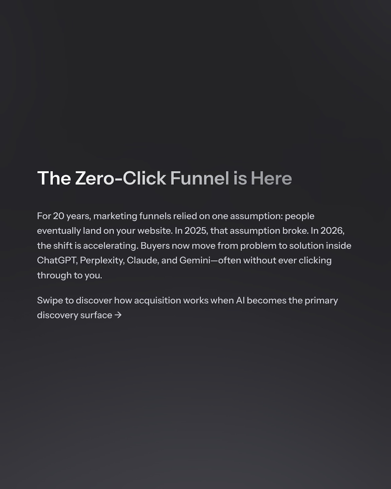 AI answers, conversational interfaces, and OS-level assistants now handle a huge portion of what we used to call “top-of-funnel.”