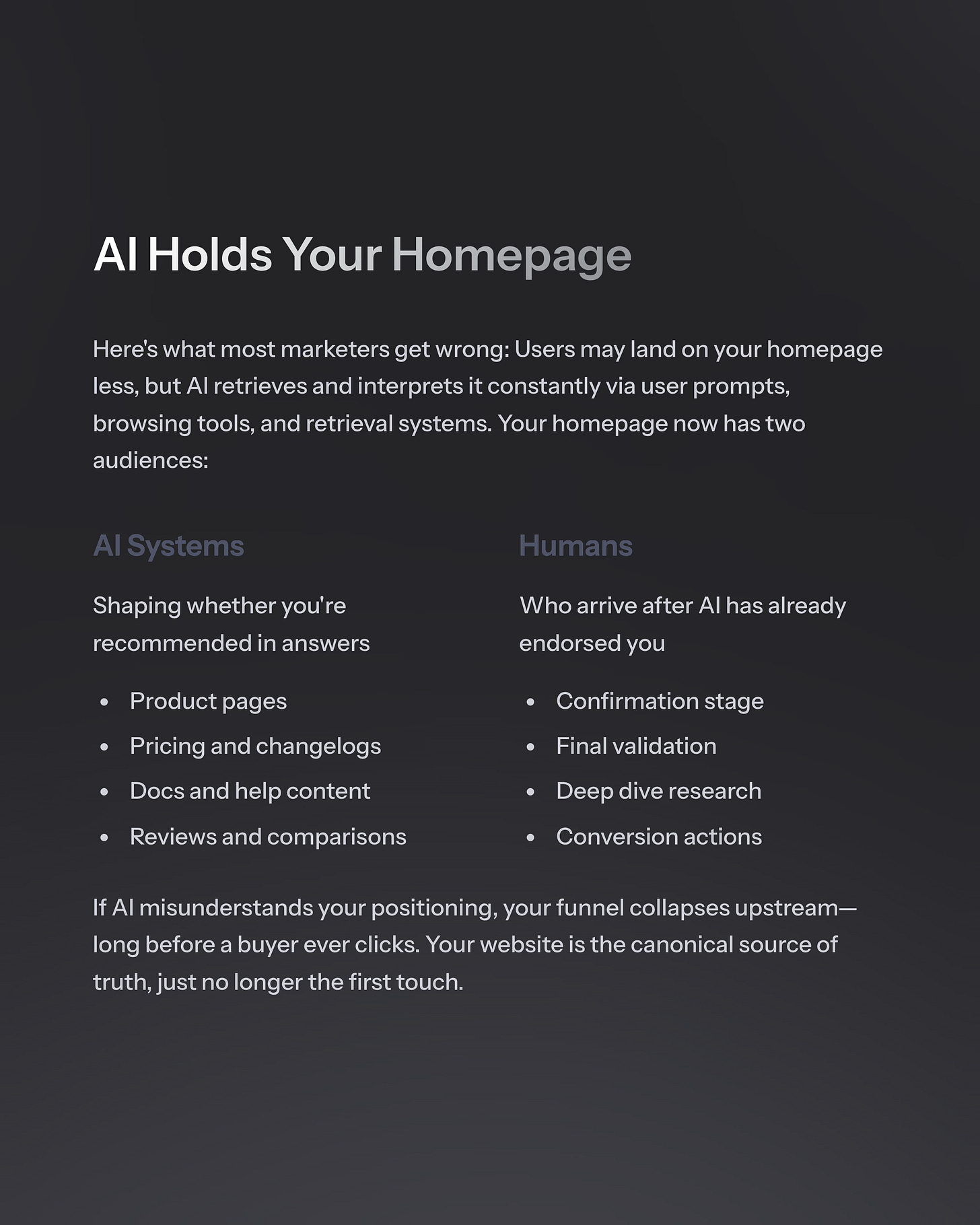Because if AI misinterprets your positioning, your funnel collapses long before a human ever touches your site.