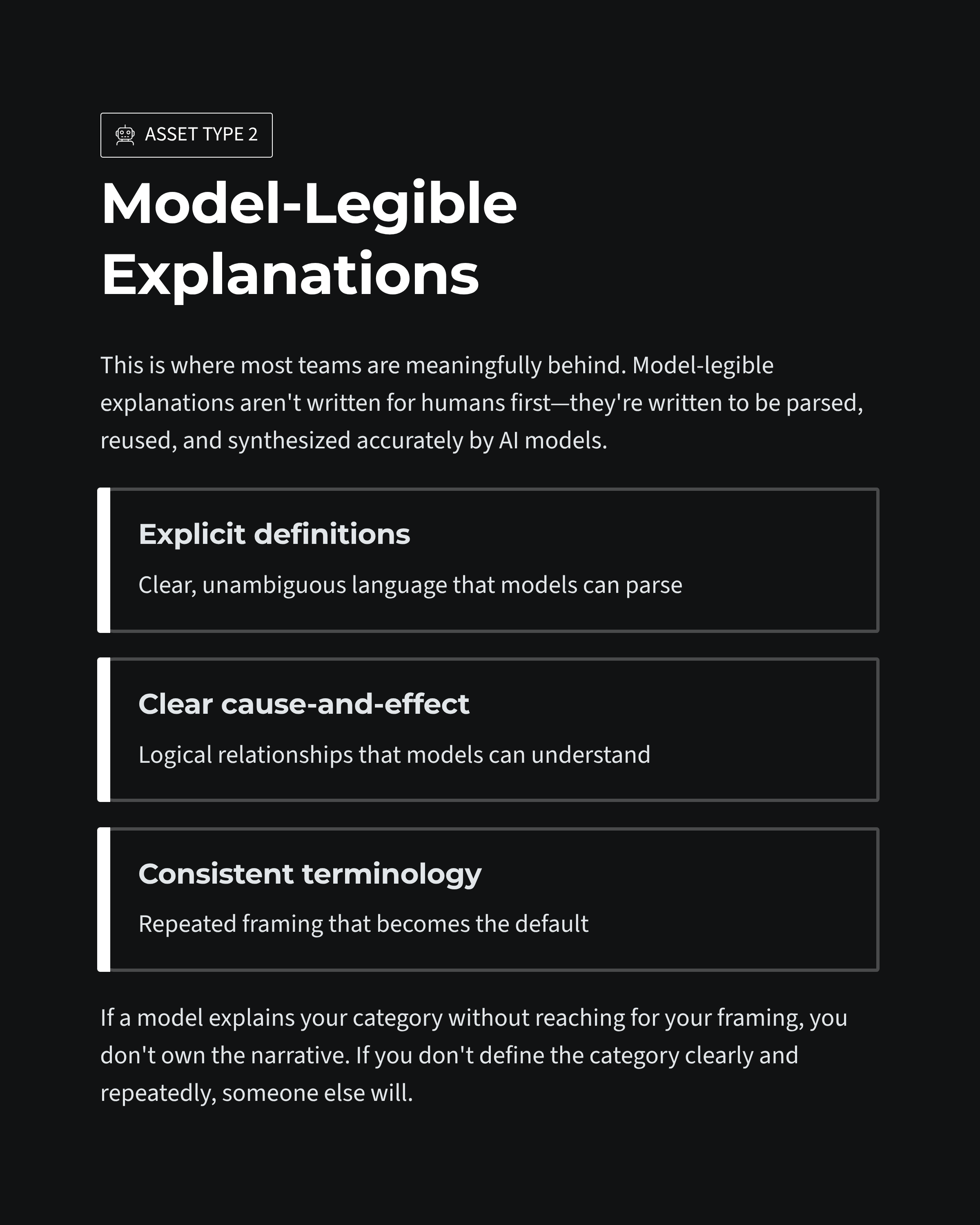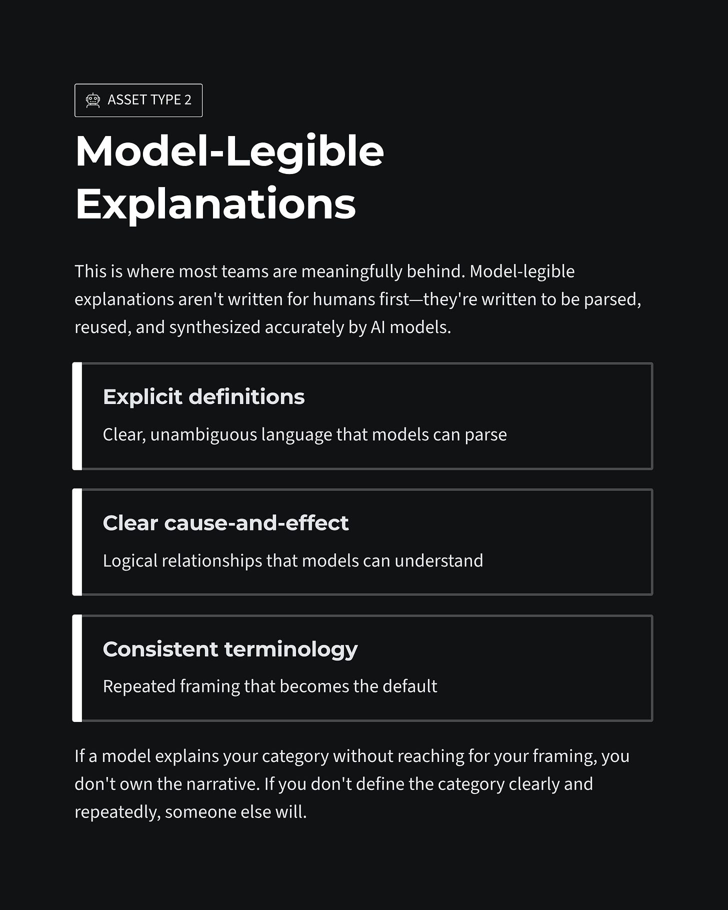 Model-legible explanations are not written for humans first. They are written to be parsed, reused, and synthesized accurately.