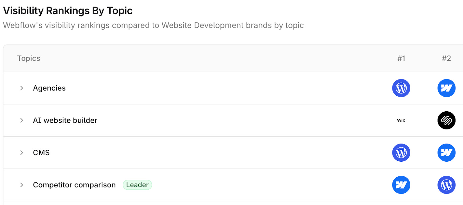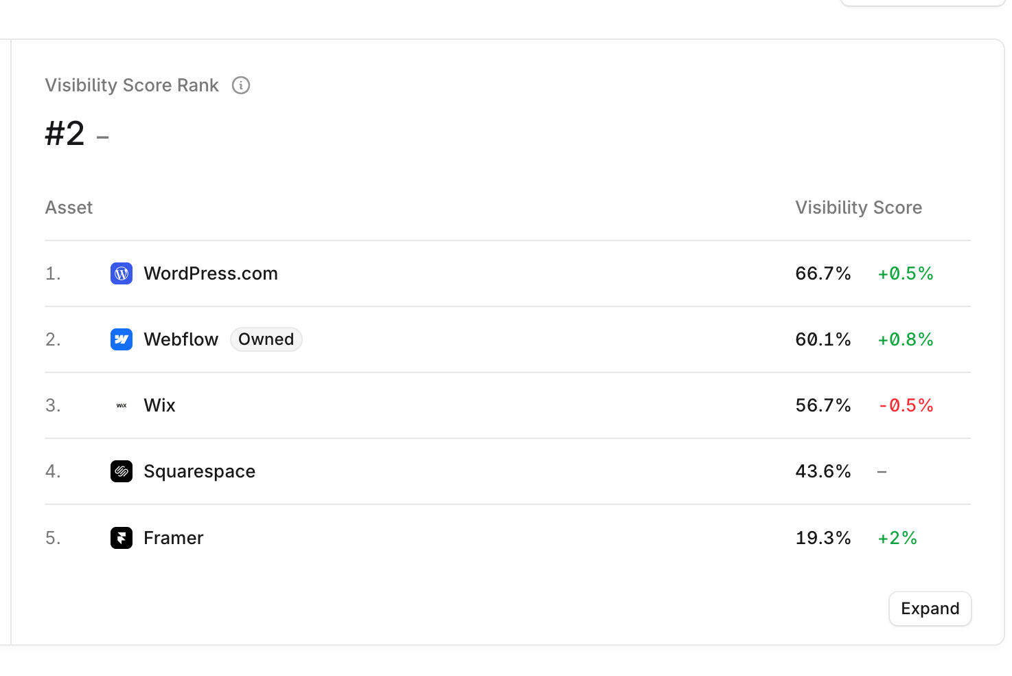 Despite only 1.2% CMS market share, we appear in ~60% of AI-generated answers in our category.