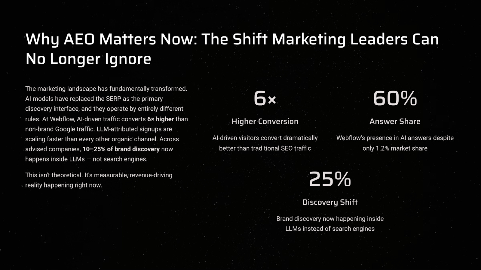 At Webflow, AI-driven traffic converts 6× higher than non-brand Google traffic.